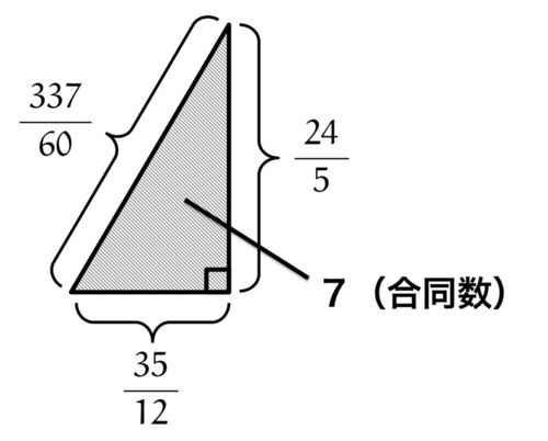 1つ前の記事で「合同数」の話が出たので,合同数についてのもう一つの話題を。 復習しておくと,合同数とは「すべての辺の長さが有理数であるような直角三角形の面積になる数」のことです。図で表すとわかりやすいですね。