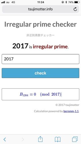 今年は西暦 2017 年ですが,2017 は素数 ということで各所で盛り上がったことと思います。実は,2017は単に素数なだけではなく,非正則素数 という重要な素数でもあるのです。今日はそのことを紹介します。概要: さっき発見したんですが 2017 は 123 番目の…